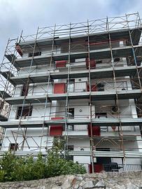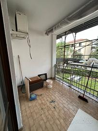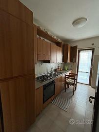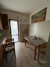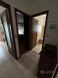 L'immobile di 90 mq è così composto: ingresso, soggiorno, cucina abitabile, corridoio, due camere da letto di cui una con poggiolo e due bagni completi. Sia la cucina che il soggiorno possiedono l'accesso al terrazzo di buone dimensioni ed abitabile.