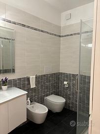 E' dotato di due camere matrimoniali, un bagno, cucina, ampio salotto e zona lavanderia/dispensa. Vi e' inoltre una veranda con giardino sul retro. Possibilità di affittare anche le singole stanze, al costo di Euro 450 ciascuna, oltre alle spese di luce e gas, con spazi comuni in condivisione.