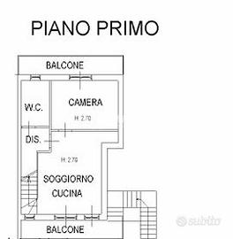 L'appartamento possiede l'ingresso e una parte di giardino in condivisione con l'unità abitativa del piano terra ma con accesso indipendente e ad uso esclusivo attraverso la scala esterna ubicata nello stesso.
