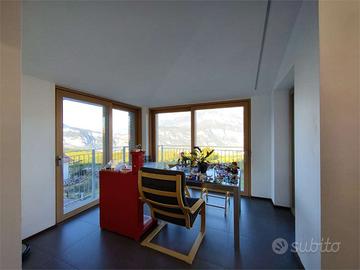 La luminosa zona giorno, completamente esposta a ovest, offre unaccogliente atmosfera e una splendida vista panoramica sul Bondone e sulla Paganella. Labitazione si compone di un ampio soggiorno con cucina, due camere da letto una delle quali dotata di cabina armadio , un bagno finestrato e una spaziosa terrazza ideale per godersi momenti di relax allaperto.