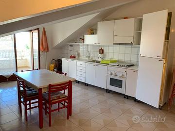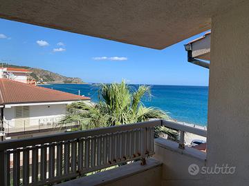 Grazioso appartamento in villa ,composto da ingresso salone cucina , 2 camere da letto, bagno , veranda con vista mare, ampio terrazzo fronte mare , spazio verde,cortile attrezzato, accesso al mare a pochi metri