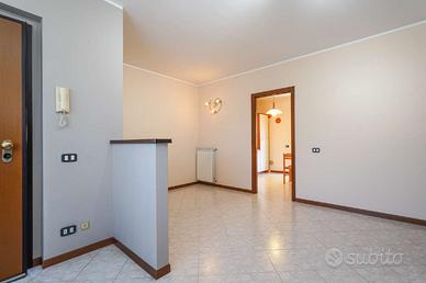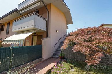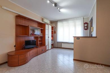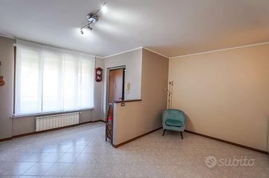 Si accede alla proprietà dall'ingresso indipendente al piano terra dove troviamo una piccola porzione di giardino, tramite scala esterna privata si raggiunge il piano primo dove un terrazzino vivibile conduce all'interno dell'appartamento composto da soggiorno, cucina abitabile con balcone, disimpegno con ripostiglio, camera matrimoniale, camera singola e bagno con doccia, completa la soluzione un box singolo al piano interrato (profondità 5,4 m x larghezza 3,3 m).
