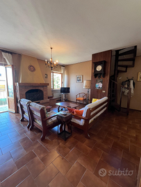 In villa con giardino, esposta a sud, con vista sulla vallata, al centro del paese di Villagrande di Montecopiolo, provincia di Rimini, vendiamo due appartamenti.