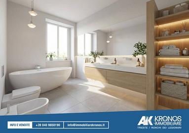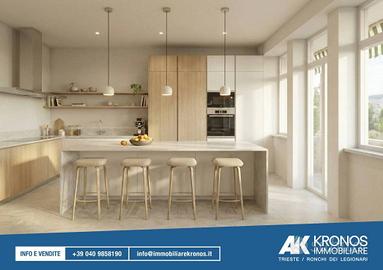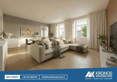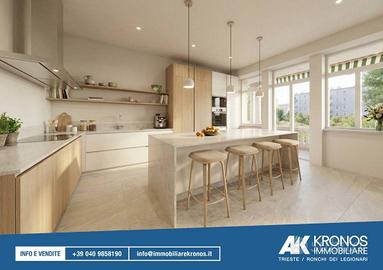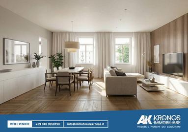 Rif:RT539 (127529390) - Situato in un contesto di assoluta tranquillità e fascino, questo appartamento rappresenta una rara opportunità abitativa. Inserito in una villa di sole tre unità, l'immobile è attualmente in fase di completa ristrutturazione, garantendo finiture di lusso e impianti di ultima generazione. La villa è circondata da un parco di ca. 2000mq al quale si accede da un vialetto privato. L'abitazione è composta da: ingresso, cucina abitabile con terrazzo di ca. 10 mq, elegante salone, 3 camere da letto, ampio studio (o quarta camera da letto) e tre bagni. Le finiture di pregio, la vicinanza con il centro città e il verde che ci circondano valorizzano l'appartamento unico nel suo genere. La villa dispone anche di un terrazzo con vista a 360 gradi, dal mare al colle di Scorcola. Completa la proprietà un garage e un posto macchina. Le informazioni contenute nel sito non costituiscono termine contrattuale e le metrature sono indicative. Per questo immobile contattare la sede di Trieste - Via delle Torri, 2/b - Classe: C - IPE: 84.77 kWh/mq anno