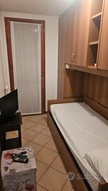 Rosolina Mare Villaggio Mediterraneo. Grazioso appartamento mobiliato su tre piani così composto: Piano Terra con cucina-soggiorno, 1° Piano con camera matrimoniale, bagno con lavello, bidè e servizio doccia, 2° Piano camera con due letti singoli, camera con letto singolo estendibile a 2 singoli, bagno con lavello, bidè e vasca da bagno con doccia. Ogni stanza è provvista di TV. Climatizzatori numero due. Finestre e porte provviste di zanzariere. Esterno: giardinetto privato, tavolo pranzo, caminetto. Posto auto privato interno alla proprietà. Zona tranquilla con accesso auto al villaggio tramite telecomando. Distanza dal mare circa mt. 700. Adiacente ulteriore possibilità di parcheggio auto pubblico con accesso privato tramite cancello. Tipi di Affitto : stagionale aprile/agosto, mensile, quindicinale, settimanale.