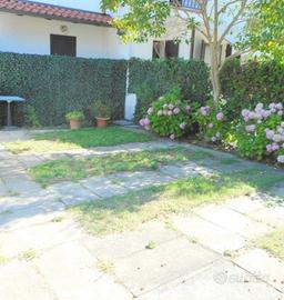 Vendesi appartamento in villino, piano primo ingresso su sala con cucina, camera matrimoniale, cameretta, bagno, ampio terrazzo coperto con caminetto barbecue, al piano terra giardino con possibilità di parcheggio due auto, doccia con secondo bagno, ripostiglio, casetta per biciclette e attrezzi, tutto condonato e in regola, l'accesso è indipendente dal giardino con scala esterna, l'abitazione viene venduta completamente arredata, dotata di attrezzatura per il giardino e piccole manutenzioni, biciclette di cui una elettrica