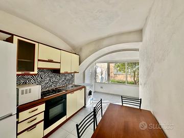 L'abitazione è composta da tre locali, tra cui due camere da letto, bagno e cucina che si affaccia su una corte esclusiva, in cui poter trascorrere sereni momenti di convivialità.