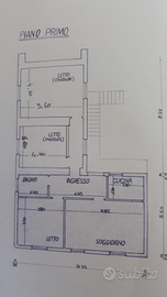 Composto da ingresso , cucinotto , salotto-pranzo , tre camere ( 2 normali e 1 molto grande ) bagno corridoio balcone e garage di 30 mq