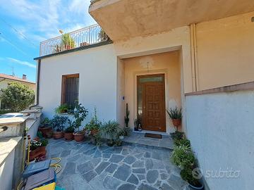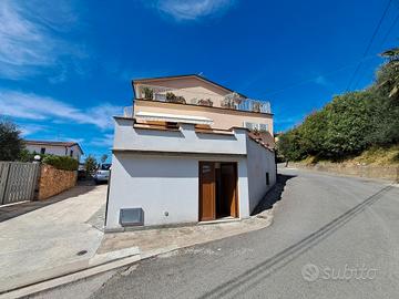 Ubicato nella collina che sovrasta il paese di Capannoli, appartamento su due piani per totali 140 mq e precisamente un piano seminterrato di 75 mq con tre lati fuori terra e con con ingresso indipendente esterno, il seminterrato è composto da due locali, uno più piccolo all'ingresso ad uso dispensa e uno grande aperto sulla cucina, un bagno e scala per il piano superiore, il piano superiore 65 mq ha ingresso indipendente da resede privato a livello strada ed è composto da disimpegno, ampia cucina pranzo con bella terrazza esterna, terrazza da vivere all'aperto con vista panoramica, 2 camere e bagno, inoltre a fianco della proprietà troviamo resede privato dove poter parcheggiare 2 auto.