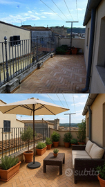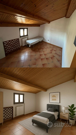 L'appartamento dislocato su due livelli è composto di una cucina, soggiorno, camera da letto m., bagno, due camere da letto singole, zona studio con accesso ad un terrazzo panoramico e bagno.