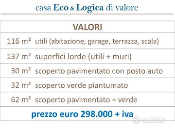 La facciata aerata ventila in modo naturale, preservando le prestazioni dell'abitazione, con risparmio energetico che porta l'immobile in Classe A4 Nzeb.