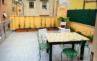 Con ingresso autonomo nella via del teatro, molto tranquilla e non trafficata, l'appartamento ha un grande terrazzo, due camere ed è dotato di aria condizionata
