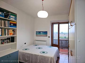 Al primo piano di un caratteristico podere con solo due unità, ingresso privato da scala esterna, 110 m² interni con 3 camere, grande salone, cucina, bagno e 3 balconi. Giardino di circa 2.500 m² e capannone di 100 m² ideale come garage, deposito o spazio per barca/roulotte.