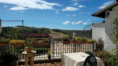 Appartamento su due livelli ingresso indipendente nel comprensorio cassia 701. Cosi composto: al primo piano salone con angolo cottura, camera da letto, 2 bagni, mansarda con due posti letto, terrazzo, e giardino. Riscaldamento autonomo + due condizionatori caminetto a pellet, parquet. Disponibilità Marzo 2026.