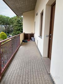 In Riolo Terme via De Gasperi vendo appartamento indipendente di complessivi 165 mq circa di cui 25 di garage. L'immobile si trova al secondo piano di una palazzina "a schiera" e lo si raggiunge da una comoda ed ampia scala esterna coperta. La composizione è la seguente: Piano primo: ampio terrazzo coperto, salone di 36 mq con pavimento in granito , cucina abitabile, camera matrimoniale, bagno con vasca. Piano secondo mansardato raggiungibile da ampia scala interna in legno: cameretta, camera open space ampiamente calpestabile completa di armadi e cassettiere a muro nuovi , bagno con cabina doccia. Ampio garage con attacco per lavatrice e lavabo con acqua calda/fredda; forno a legna , locali con caldaia a condensazione dí installazione recente e attacchi per depuratore. Zona per sosta auto esclusiva e stendi biancheria. Tutte le utenze sono private e non ci sono spese condominiali. I due piani sono asserviti da condizionatori con pompa di calore. Infissi con doppi vetri e zanzariere. Prezzo trattabile.