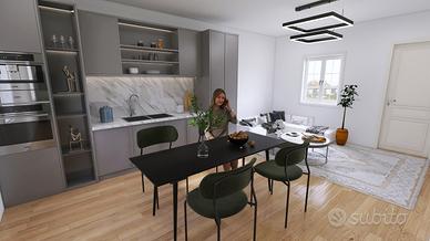 - 53 MQ ottimizzati grazie alla pianta quadrata, dispongono di moderna zona giorno con cucina a vista, una camera e bagno.