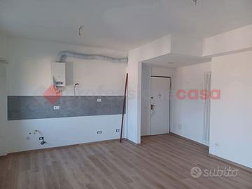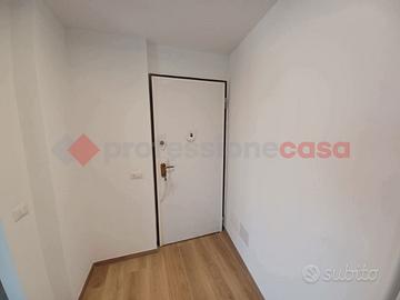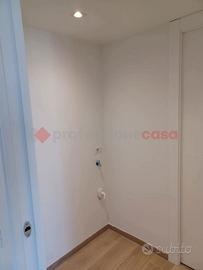 Ingresso nella zona living composta da ampio soggiorno con angolo cottura e accesso al balcone. Abbassamenti con faretti: disimpegno accessoriato da attacchi per lavatrice e asciugatrice; la zona notte è composta da una camera matrimoniale e dal servizio con box doccia.