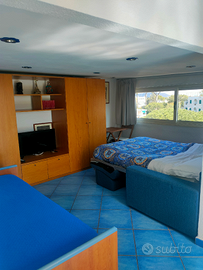 Appartamento/monolocale situato nel centro di Ischia Porto, in via Casciaro/Alfredo De Luca ,in parco,al 4 piano senza ascensore , nelle immediate vicinanze scuola Elementare Marconi, Banca, bar e negozi di ogni genere. Fermata autobus a 10 MT.Dal corso Vittoria Colonna e spiaggia circa 200 MT. L' appartamento è luminoso e ha un ottima esposizione, Dotato di un terrazzo panoramico , attrezzato con tavolo sedie, ombrellone e sdraio., aria condizionata caldo/ freddo, piccola lavatrice, smart TV, cucina attrezzata con fuochi,frigo , fornita di stoviglie.