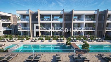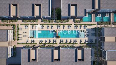 Rif: C13 Classe energetica: A4 RESIDENCE SAINT BARTH TRILOCALE CON PISCINA E SABBIA BIANCA IN PIAZZA BRESCIA Rif. C-13 -- PER INFORMAZIONI E APPUNTAMENTI -- 389.047.3.047 -- F immobiliare propone, nelle immediate vicinanze di Piazza Brescia, in residence dal contesto privilegiato, dagli spazi ricercati ed esclusivi, unità immobiliari al piano terra, di nuova costruzione, a soli 500 mt dal mare. Una residenza curata nei minimi dettagli e costruita con i migliori standard architettonici contemporanei, promette di farvi vivere sempre in vacanza grazie ad appartamenti di ultima generazione, progettati per il massimo del comfort. Lo sviluppo immobiliare gode di un contesto e raffinato, ed è dotato di una splendida piscina centrale, area relax e solarium con sabbia bianca. Lunità al piano terra, accoglie i suoi ospiti in una grande terrazza abitabile affacciata alla piscina, dalla quale si accede, grazie a delle grandi vetrate scorrevoli, alla zona living soggiorno-cucina, piacevolmente illuminata dalla luce naturale a tutte le ore del giorno. Dal disimpegno si raggiunge il reparto notte dove troviamo a disposizione una camera matrimoniale con affaccio diretto a comoda terrazza, la seconda cameretta e il bagno padronale. In ogni unità è presente limpianto autonomo con sistema canalizzato, per riscaldamento e raffrescamento, così da permettervi di vivere la vostra vacanza al mare in tutte le stagioni. Il progetto si completa con un posto auto di proprietà per ogni appartamento. Questa splendida residenza, a due passi dal mare di Jesolo, è sicuramente linvestimento ideale per la famiglia che cerca la tranquillità ed è da considerarsi una proprietà di grande prestigio; rappresenta sicuramente la soluzione ideale in termini di posizione e può essere acquistata come casa vacanza o come immobile da mettere a reddito. La consegna è prevista per l'estate 2027. Per maggiori informazioni in merito a questa esclusiva opportunità immobiliare...