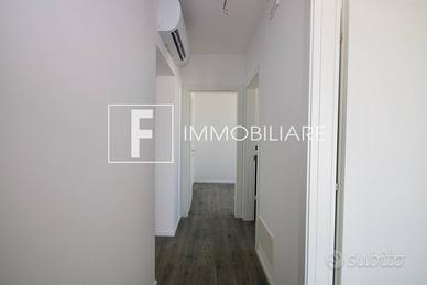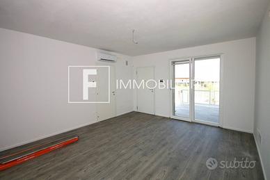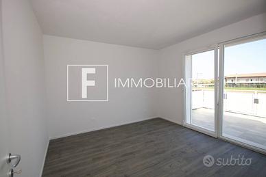 Rif: L184-B Classe energetica: A4 - EPglnr: 6.87 kWh/m² APPARTAMENTO TRILOCALE CON GARAGE, NUOVA COSTRUZIONE. PER INFO E VISITE sig. FRANCESCO, tel. 328.45.82.614 - Riferimento L184. In posizione strategica vicino ai servizi di Jesolo Paese ed a circa 2 km dal mare, proponiamo appartamento trilocale al PIANO PRIMO con POSTO AUTO E GARAGE PRIVATI. L'unità oggetto di proposta è caratterizzata da un distributivo interno suddiviso in soggiorno/cucina da 24 mq, 18 mq di terrazza principale per pranzare all'aperto e loggia esterna che amplifica la sensazione di spaziosità e confort dell'abitazione. Due le camere da letto con ulteriori 23 mq di terrazze, bagno principale finestrato e locale tecnico interno ad uso ripostiglio. La luminosità naturale sarà garantita da vetrate scorrevoli in soggiorno e portefinestre su ognuna delle 2 camere. Assieme all'appartamento un GARAGE PRIVATO ed un secondo parcheggio nello scoperto al pian terreno, ideale per custodire la bici o lo scooter di proprietà. Di assoluto rilievo la dotazione tecnologica: - Certificazione energetica in classe A4 - Impianto di riscaldamento a pavimento in pompa di calore - Musica con filodiffusione interna - Fotovoltaico - Tapparelle in alluminio motorizzate e coibentate - Serramenti in PVC con vetrocamera bassoemissivi - Isolamento esterno a cappotto Immobile in PRONTA CONSEGNA. NESSUNA SPESA CONDOMINIALE. Per ulteriori informazioni relative a questa nuova costruzione, contattate il sig. Francesco al riferimento L184. Agenzia F Immobiliare Via G. Mameli 74/3 - Lido di Jesolo (VE)