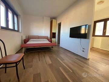 Centro storico - Monolocale con ambiente aggiuntivo, tra Corso Vittorio Emanuele e la Basilica di San Bernardino Nel cuore del centro storico, in posizione privilegiata tra Corso Vittorio Emanuele e la Basilica di San Bernardino, proponiamo in vendita un caratteristico monolocale situato al quinto piano di una palazzina ristrutturata dopo il sisma. L'appartamento, pur essendo un unico ambiente, è stato tramezzato per creare una separazione funzionale tra zona soggiorno, angolo cottura e bagno finestrato. La disposizione interna è semplice ma razionale, ideale per chi cerca una soluzione compatta e centrale. Un elemento di particolare interesse è la presenza di un secondo ambiente, adiacente all'ingresso dell'abitazione e di proprietà esclusiva, che può essere adibito a studio, stanza ospiti, zona relax o utilizzato in base alle proprie esigenze. La palazzina non è dotata di ascensore, ma la posizione all'ultimo piano garantisce tranquillità, luminosità e affacci suggestivi sui tetti del centro. Perfetto come investimento, pied-à-terre o abitazione per chi desidera vivere in una delle zone più autentiche e servite della città.