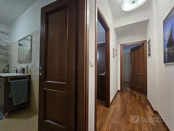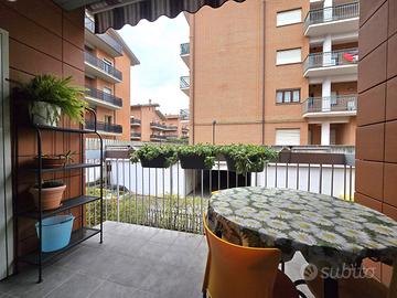 L'abitazione si apre su un luminoso soggiorno con angolo cottura, con accesso diretto al balcone, dove è presente il vano caldaia esterno. Un comodo disimpegno conduce alla zona notte, composta da due camere da letto, entrambe con uscita sul balcone, e da un bagno finestrato completo di doccia.