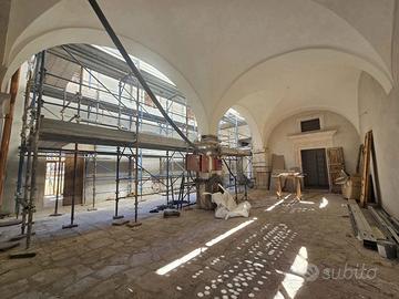 Nel cuore del centro storico dell' L'Aquila, all'interno del prestigioso Palazzo Zuzi, proponiamo in vendita una residenza di straordinario pregio situata al piano rialzato di uno degli edifici nobiliari più affascinanti della città. Palazzo Zuzi rappresenta un esempio significativo di architettura storica aquilana, caratterizzato da una raffinata commistione di elementi rinascimentali e barocchi, frutto di secoli di stratificazioni e interventi che ne hanno esaltato il valore artistico e monumentale. L'immobile è sottoposto a vincolo della Soprintendenza delle Belle Arti, a testimonianza della sua rilevanza storica. L'appartamento, di oltre 230 mq, è attualmente in fase di ristrutturazione e conserva intatti elementi originali di grande fascino: ambienti affrescati, pavimentazioni d'epoca e porte storiche che contribuiscono a creare un'atmosfera unica e di grande rappresentanza. La proprietà presenta una particolare conformazione interna, ideale per essere reinterpretata secondo esigenze moderne, mantenendo al contempo il carattere autentico della dimora. A completare questa residenza esclusiva troviamo: ampie cantine al piano interrato per circa 250 mq, spazi versatili e di grande valore; un terrazzo e un balcone che offrono piacevoli affacci e sfoghi esterni; un raro e prezioso giardino privato di circa 300 mq, elemento di assoluta unicità nel centro storico, difficilmente reperibile in contesti analoghi. Una soluzione irripetibile per chi desidera vivere o investire in una dimora di rappresentanza, dove storia, arte e spazi esclusivi si fondono in un contesto di altissimo prestigio.