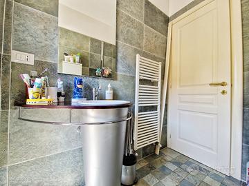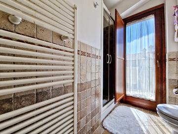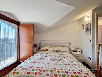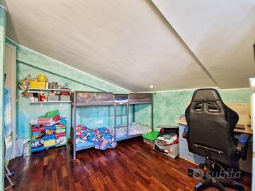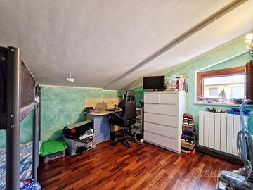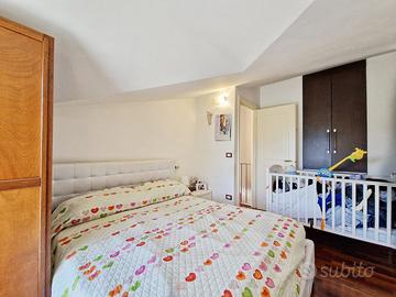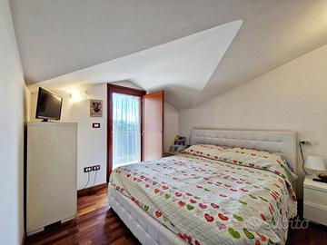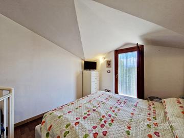 Una comoda scala in ferro ci conduce al piano superiore mansardato dove troviamo la zona notte composta da due camere da letto, di cui una con ampia cabina armadio e armadio a muro, e un bagno completo e finestrato.