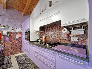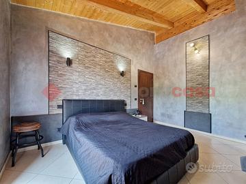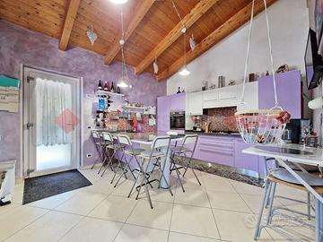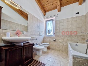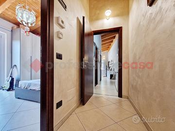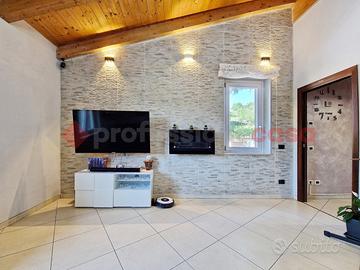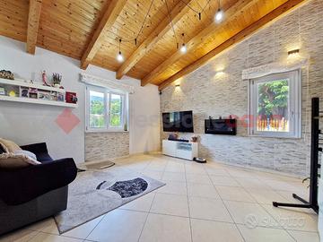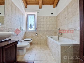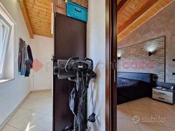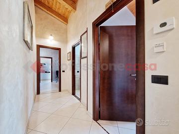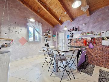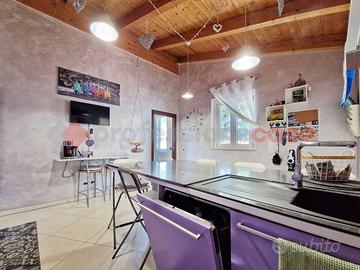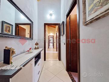 L'abitazione, sita al piano terra, si compone di ingresso sulla cucina abitabile, comodo soggiorno, disimpegno con due piccoli ripostigli, due camere da letto matrimoniali, di cui una dotata di cabina armadio, e due bagni completi e finestrati.
