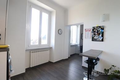 L'appartamento ristrutturato è composto da entrata in soggiorno con finestre vista mare, cucina abitabile, ripostiglio, bagno, cameretta e camera matrimoniale.