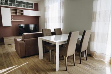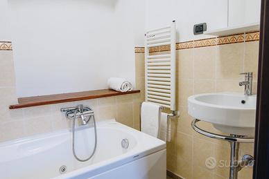 La struttura, un appartamento di 65 metri quadri, è ammobiliata in stile moderno e offre ogni comfort necessario. Comprende una camera da letto con bagno privato e due bagni aggiuntivi, uno dotato di bidet e l'altro di una vasca idromassaggio. L'ampia zona giorno openspace è attrezzata con un divano letto, un televisore smart da 55 pollici, un tavolo da pranzo allungabile e una cucina completa di forno, lavastoviglie e frigorifero.