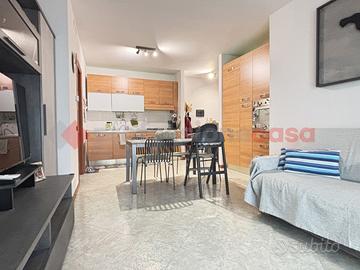 L'appartamento è composto da un pratico disimpegno d'ingresso e si apre poi su una zona giorno accogliente con cucina a vista e accesso al comodo balcone a cui si può accedere anche dalla camera matrimoniale.