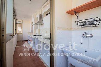 Rif: DV-8769-5 (193496525) - [Rif. DV-8769] In Largo Giuseppe Salvatore Vaiana 8 a Palermo, proponiamo in vendita un ampio appartamento di 126 mq commerciali, situato al quinto piano di una palazzina servita da ascensore. L'immobile, in buono stato manutentivo, gode di doppia esposizione e di una distribuzione degli ambienti funzionale e ben organizzata. Accedendo all'abitazione, ci accoglie una spaziosa zona giorno open - space, molto luminosa grazie alle ampie finestre, composta da un soggiorno con uscita su un balcone panoramico con vista sulle montagne e da un'area che può essere adibita a zona pranzo o angolo relax. Questo ambiente si distingue per il design architettonico moderno, impreziosito da pareti curve che donano movimento e carattere. Adiacente alla zona pranzo si trova una pratica cucina in muratura, ben ventilata, anch'essa con uscita sul balcone, dove è presente una piccola zona adibita a lavanderia. Proseguendo verso la zona notte, posta sulla sinistra, troviamo una grande camera da letto matrimoniale con accesso al proprio balcone privato, una seconda camera da letto molto spaziosa, due bagni finestrati completi di tutti i sanitari e un comodo ripostiglio. Tra le dotazioni dell'immobile troviamo: pavimenti in ceramica, porte interne in legno, finestre con scuri in PVC, porta blindata, riscaldamento autonomo a radiatori, ascensore e posto auto. L'appartamento si affaccia anche su un curato giardino condominiale. L'immobile è situato in Largo Giuseppe Salvatore Vaiana 8 a Palermo, in una zona residenziale tranquilla e ben servita, con negozi, supermercati e mezzi pubblici nelle immediate vicinanze. La fermata dell'autobus "Vaiana - Cep" è a soli 3 minuti in piedi, con collegamenti frequenti verso il centro città. Inoltre, la stazione di Palermo Guadagna è nelle vicinanze, offrendo ulteriori opzioni di trasporto ferroviario locale. L'aeroporto - Classe: F - IPE: 92.79 kWh/mq anno