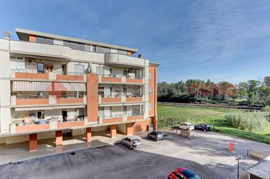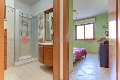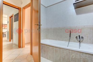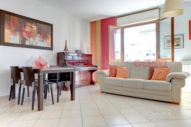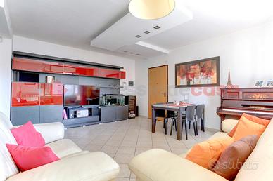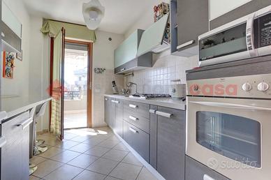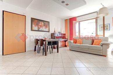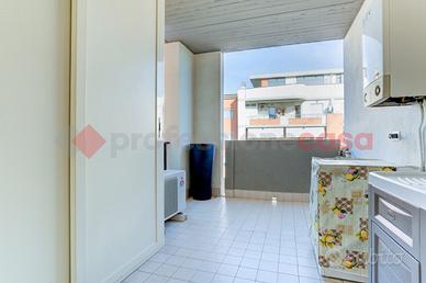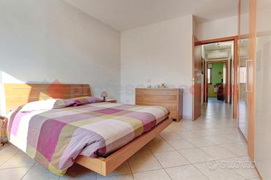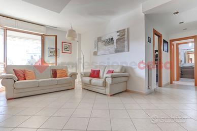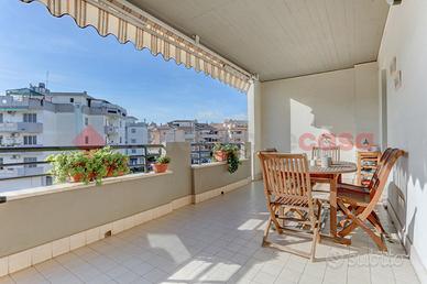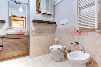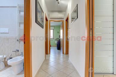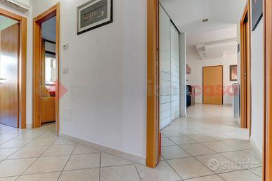 L'appartamento della superficie di 110 mq, si trova al piano secondo di una palazzina di tre piani, servita da ascensore. L'ingresso nel luminoso soggiorno, che comunica direttamente con la cucina separata, entrambi con accesso al terrazzo abitabile di 20 mq, dotato di tenda solare elettrica. Il disimpegno conduce alle tre camere da letto, ai due bagni, entrambi con finestra nel cavedio, oltre a un ulteriore balcone di 10 mq, attrezzato con armadio su misura e zona lavanderia. Completano la proprietà un box auto di 32 mq al piano seminterrato e un posto auto scoperto di 12 mq al piano terra.