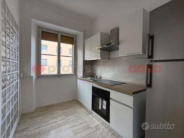 In appartamento di circa 115 mq posto al primo piano in palazzina dotata di ascensore recentemente ristrutturato e ben arredato. L'immobile dispone di quattro camere da letto luminose, dotate di climatizzatore e TV, un ampio ingresso, cucina abitabile, doppi servizi finestrati (vasca + doccia), ripostiglio e lavanderia (lavatrice + asciugatrice).