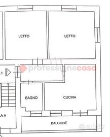 L'appartamento, posto al piano primo della superficie di 80 mq, è composto da ingresso, cucina con balcone, due comode camere e bagno finestrato con doccia. Possibilità parcheggio.