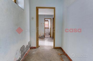 L'appartamento di circa 100 mq è posto al piano rialzato di una palazzina priva di ascensore e richiede un intervento di ristrutturazione interna. La superficie e la presenza di aperture permettono una distribuzione funzionale degli spazi, con la possibilità di realizzare almeno due camere da letto, doppi servizi e una comoda zona giorno, oltre al balcone. Ogni unità abitativa dispone di un posto auto non assegnato all'interno del parcheggio condominiale.