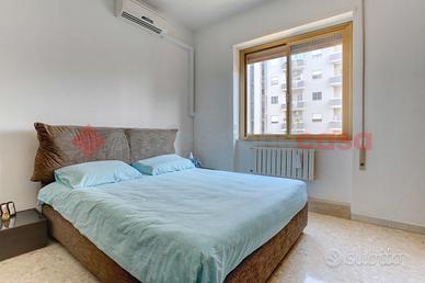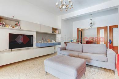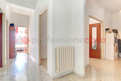 L'appartamento di ampia metratura, posto al primo piano di un edificio di sei livelli servito da ascensore, si compone di ingresso, soggiorno, cucina separata, ripostiglio, disimpegno, due camere da letto, un bagno finestrato (con possibilità di realizzare un secondo bagno) e due balconi. Completa la proprietà un garage di 40 mq.