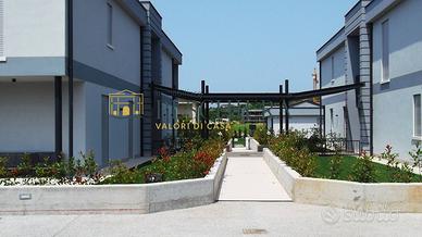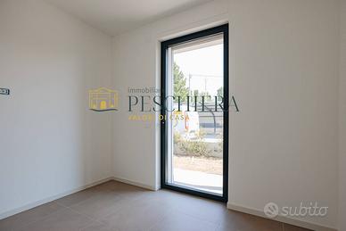 Rif: P 25.58 APP. 7 Classe energetica: A4 Lazise, ad 1 Km dal centro storico e dal lago, in nuovo ed elegante complesso residenziale con piscina, proponiamo trilocale al piano primo con cantina e posto auto di proprietà. L'immobile si sviluppa su un unico livello così composto: ingresso da terrazzo comune, soggiorno con cucina a vista, disimpegno, camera matrimoniale, camera singola e bagno finestrato. Terrazzo abitabile di c.a. 23 mq. Completano la proprietà la cantina al piano interrato ed il posto auto coperto al piano terra. L'unità immobiliare sarà dotata di riscaldamento a pavimento autonomo con pompa di calore (3 Kw), impianto fotovoltaico indipendente, aria condizionata e tapparelle elettriche. Classe energetica A4. Consegna prevista Gennaio 2025. Potete contattarci senza impegno per ottenere maggiori informazioni o per prenotare una visita per questo trilocale a Lazise. Possibilità di mutuo a condizioni agevolate. La nostra consulenza ti consente di individuare il prodotto più adatto alle condizioni economiche più vantaggiose. Contattateci o scriveteci per una consulenza gratuita.
