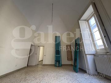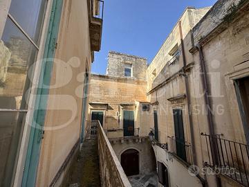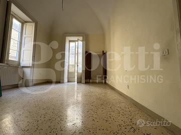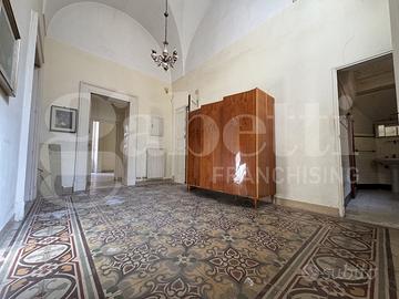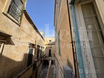 Incorniciato in una delle meravigliose corti storiche leccesi, nei pressi del Teatro greco-romano, proponiamo in vendita appartamento sito al piano primo di un piccolo palazzo nobiliare. Sette vani, tutti con volte a stella, volte a padiglione e a botte che aspettano di essere ristrutturati dando nuova vita agli elementi autentici ancora presenti, come la tipica cucina economica e i grandi infissi in legno che fanno riflettere la luce sulla pavimentazione originaria. Il doppio ingresso consente di ridistribuire gli ambienti, per adattarli alle esigenze contemporanee o per creare due unità separate ed autonome. Completa la proprietà un ripostiglio di pertinenza posizionato tra il piano terra ed il primo piano. La posizione, più unica che rara, dona quiete e discrezione consentendo però di vivere nel clou della movida, a due passi dai principali monumenti e dai luoghi esclusivi della città.