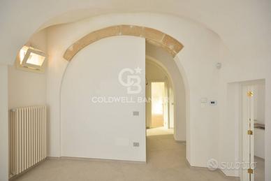 Entrando, si resta subito incantati dagli alti soffitti voltati che caratterizzano limmobile, accompagnati dall'incantevole vista dei raffinati dettagli in pietra leccese dei palazzi e delle chiese circostanti.
