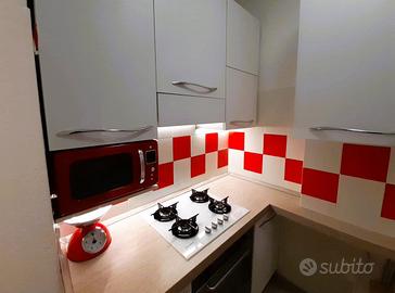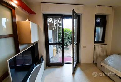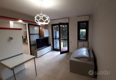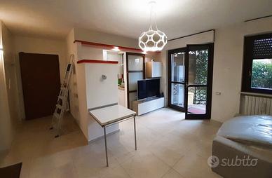L'appartamento, parzialmente arredato, è composto da ingresso su luminoso soggiorno con accesso diretto al giardino, cucina a vista moderna e funzionale, camera matrimoniale e bagno finestrato con box doccia.