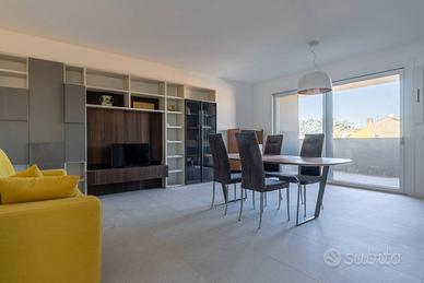 L' ampia superficie ben distribuita razionalmente garantisce ampi spazi e una perfetta distribuzione degli ambienti. L'ampio trilocale panoramico si compone di un luminoso e accogliente soggiorno con accesso diretto al terrazzino, ideale per momenti di relax e convivialità, una cucina abitabile con balcone completamente arredata e dotata di elettrodomestici di ultima generazione. La zona notte è composta da due camere da letto matrimoniali, di cui una con affaccio su un balcone panoramico, due bagni entrambi con finestra finemente rifiniti. Un comodo ripostiglio ad utilizzo lavanderia e un vano cantina completano la funzionalità dell'appartamento.