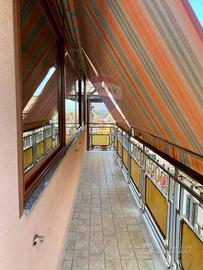 A piano terra la struttura presenta un androne spaziosa, con a fianco la porta per il grande circa garage 60 mq. Al primo piano un ampio ingresso ,sulla destra due porte ,la prima si apre sul bagnolo seconda sulla camera da letto . La camera da letto gode una forte luminosità grazie a una porta e una finestra che si affacciano sul balcone. A seguito la porta di fronte all'ingresso ,su una cucina con spazio giorno con una porta che si affaccia sul balcone . Al secondo piano, subito sulla destra un'altra cucina, seguita da un grande spazio giorno ,molto luminoso circa 35 mq. Nel secondo piano si presenta balcone abbastanza spazioso ,con un spazio quadrato dove poter mettere un tavolino con sedie o qualche sdraio , è presente un'altro bagno.