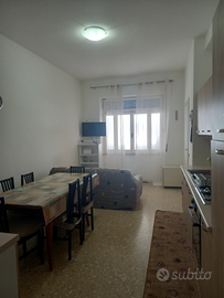 Appartamento in centro Soverato al 3° piano senza ascensore . Dispone di 2 camere da letto(una tripla e una matrimoniale), un bagno e una cucina con forno, piano cottura e frigo.