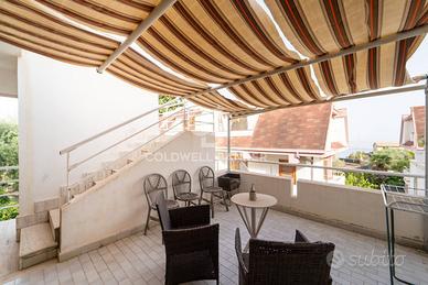 Il secondo piano è composto da un ampio open space, un secondo bagno e un piccolo terrazzo panoramico, dal quale si può ammirare una vista mozzafiato.