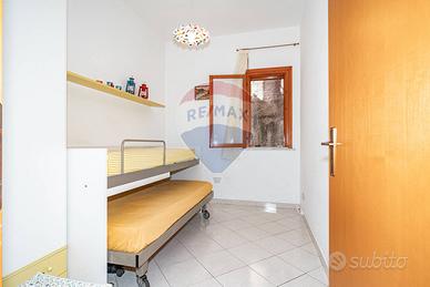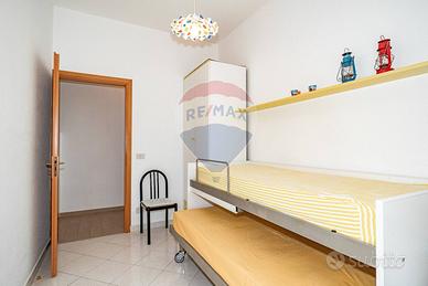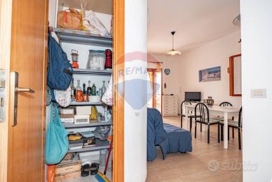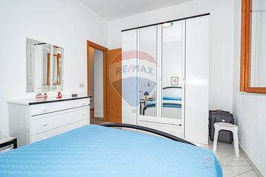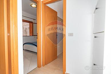 L'appartamento è composto da un ampio e luminoso soggiorno-pranzo con angolo cottura, un disimpegno, uno sgabuzzino, due camere da letto e un bagno. L'ampia terrazza offre una vista mare straordinaria e l'immobile, venduto totalmente arredato, gode anche della proprietà di un posto auto riservato presso gli spazi esterni del cortile condominiale.