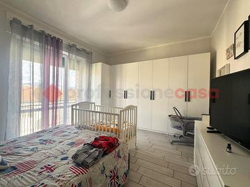 La zona notte comprende tre camere da letto, di cui due camere matrimoniali ampie e una camera media versatile, ideale come studio o cameretta. Il bagno finestrato con box doccia completa la proprietà.