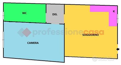 L'immobile dispone di un ingresso diretto nel soggiorno con angolo cucina, troviamo poi il disimpegno che conduce nella zona notte dove troviamo la camera matrimoniale ed il bagno.