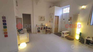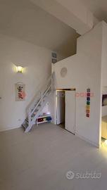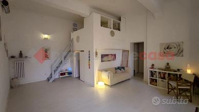 La zona notte, realizzata su soppalco affacciato sulla zona giorno, dona all'abitazione un'atmosfera moderna in stile mini loft, senza rinunciare al fascino dell'epoca.